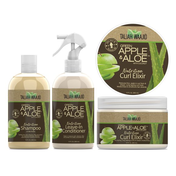 Up to 6 cash back Taliah Waajid Green Apple Aloe Curl Enhancing Frizz Control Leave-in Conditioner with Coconut Scent 12 fl oz. Taliah Waajid Thick and Full Bamboo Coconut Milk Shampoo 8 oz. Taliah Waajid Green Apple Aloe Nutrition Curl Definer 12 oz 1099 Taliah Waajid Green Apple Aloe is a nutritive hair care regimen that strengthens and moisturizes the hair while.