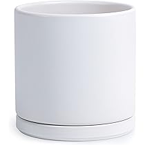 Amazon Com D Vine Dev 8 Inch Ceramic Planter Pot With Drainage Hole And Saucer Indoor Cylinder Round Planter Pot White 94 O M 1 Patio Lawn Garden